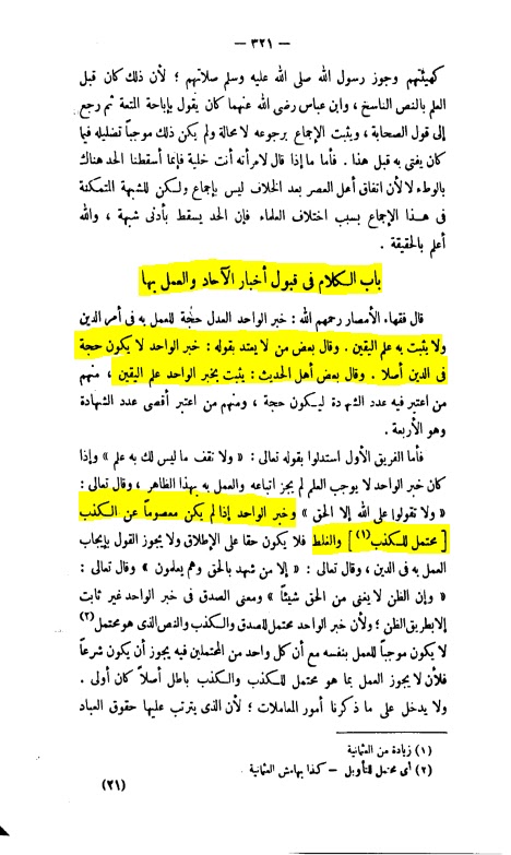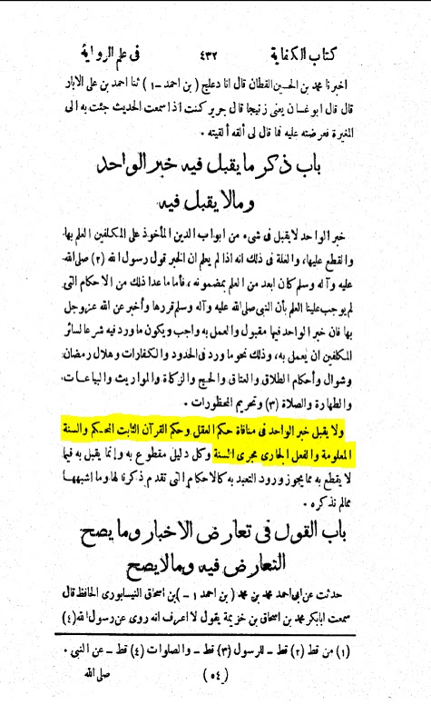(i). It has been reported in the book, “Usul Madhab Imaam Ahmed” that :